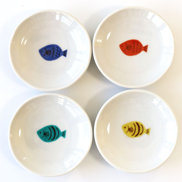 九谷焼 ハレクタニ サカナ豆皿 4pcsセット(化粧箱入り)