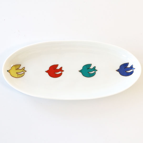 九谷焼 ハレクタニ トリ楕円皿L