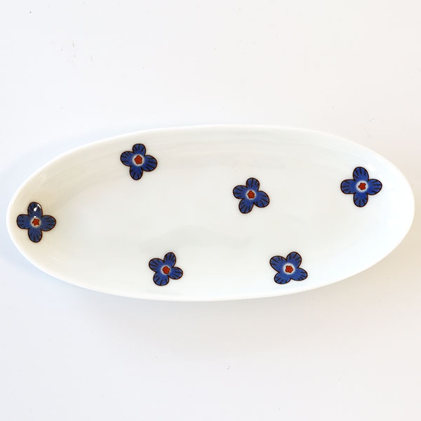 九谷焼 ハレクタニ 花楕円皿L BL