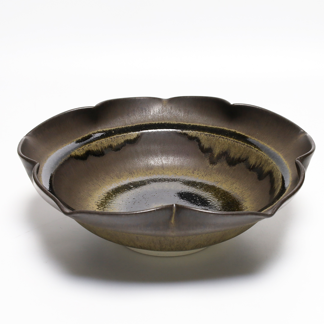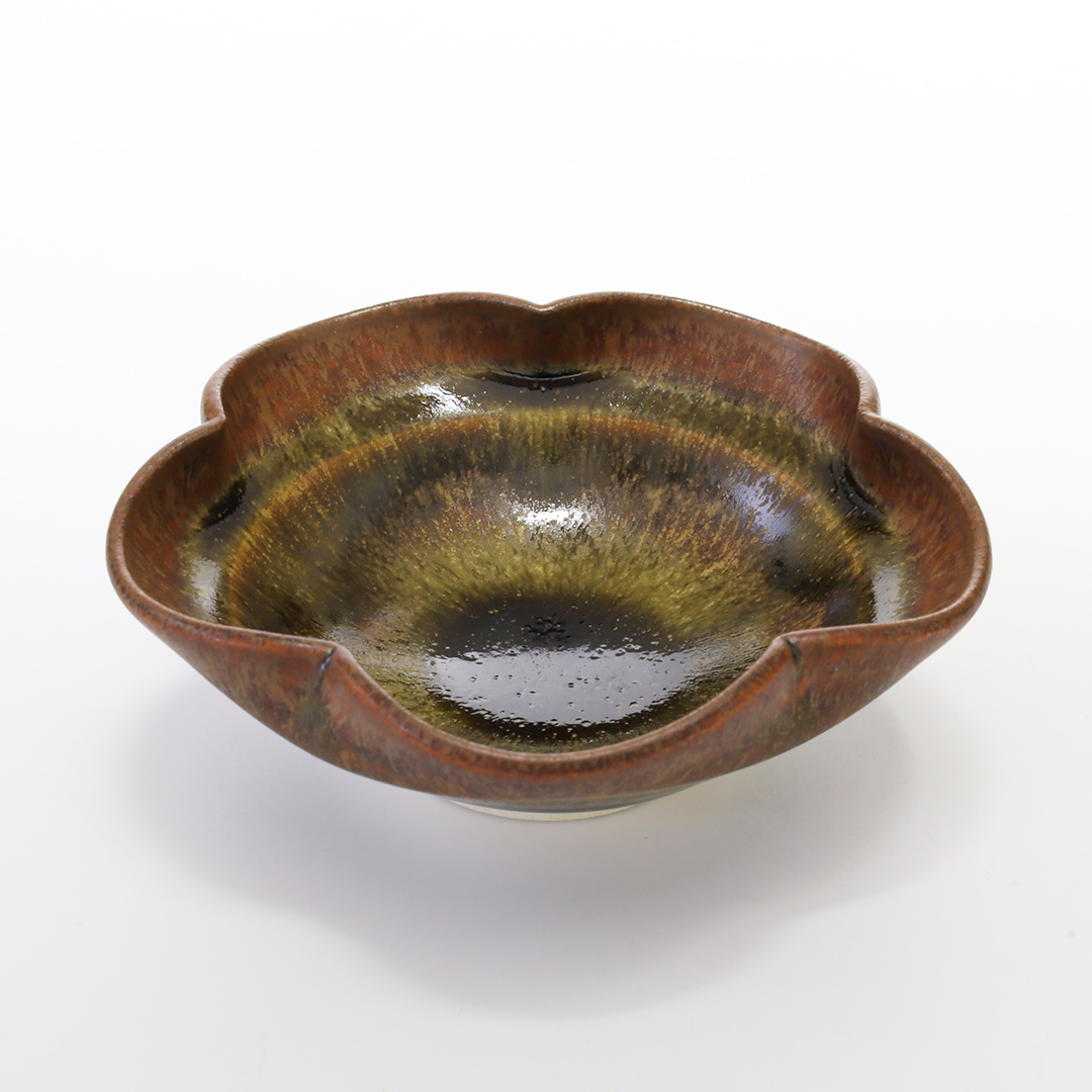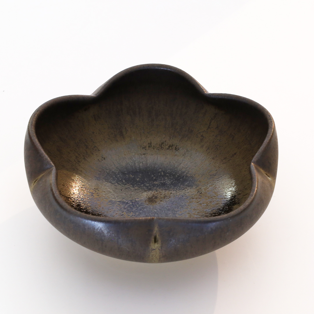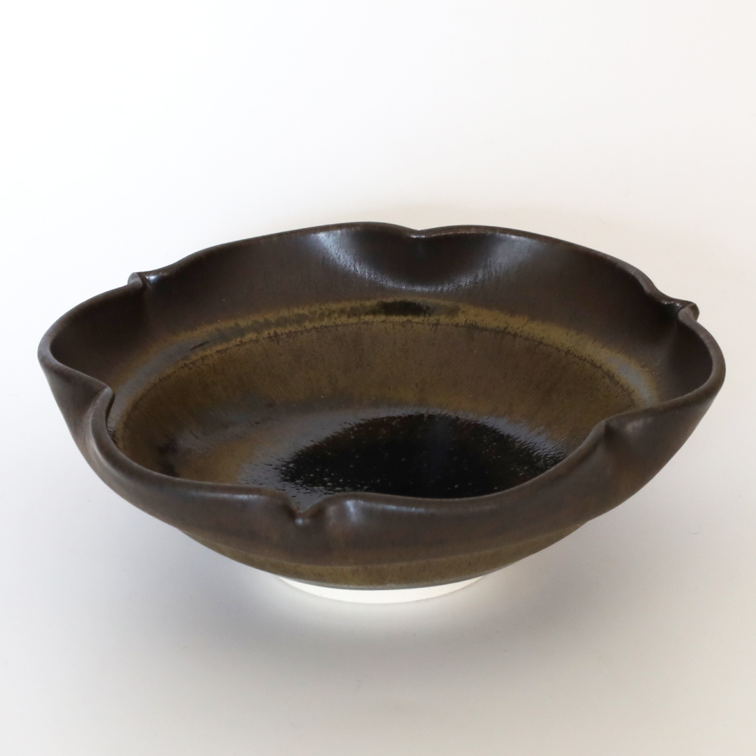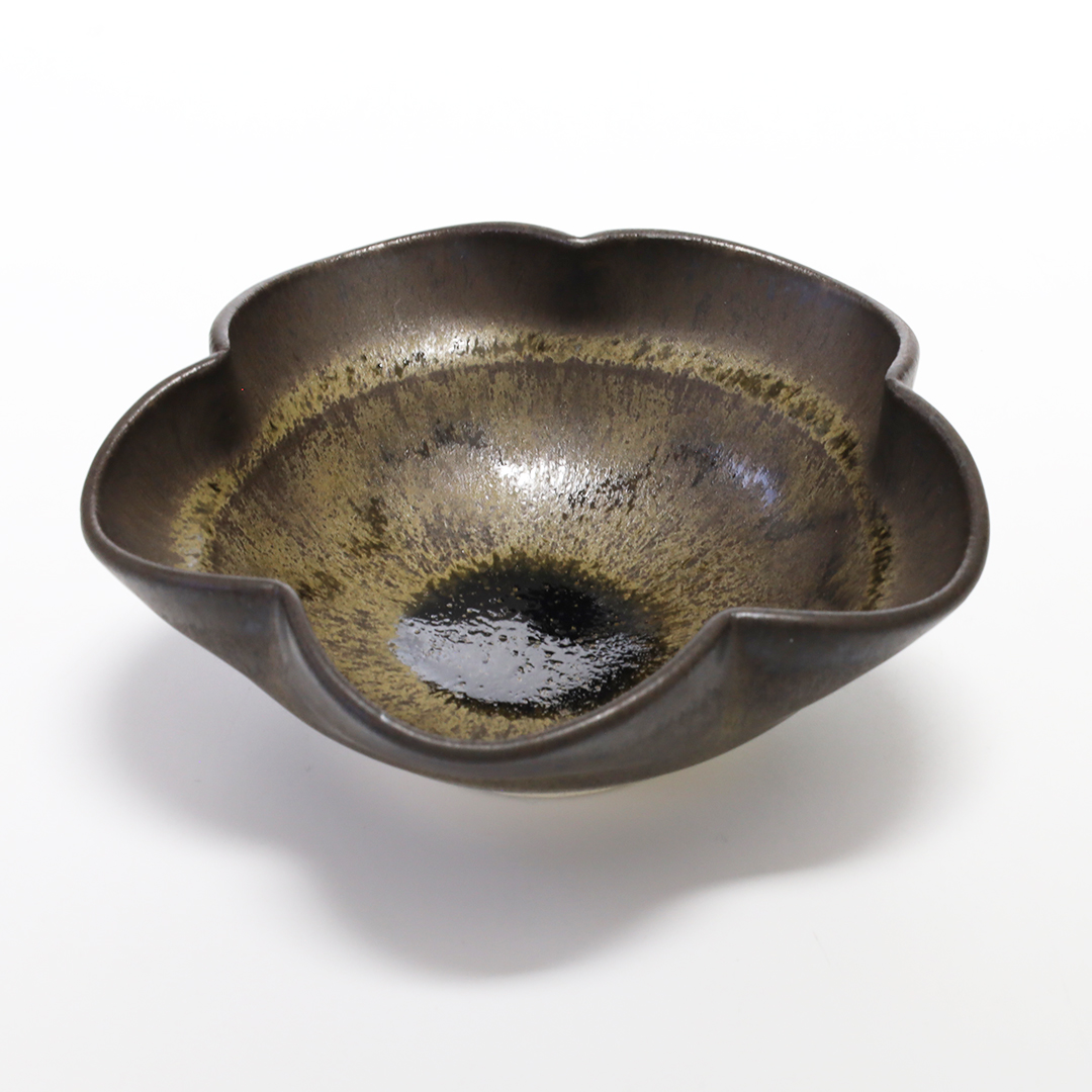 北側雄一 平向付(輪花3弁)・窯変黒釉