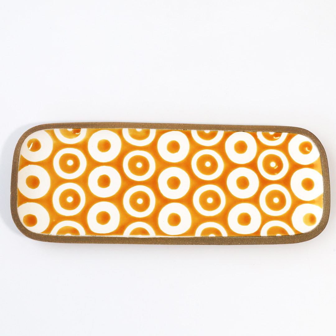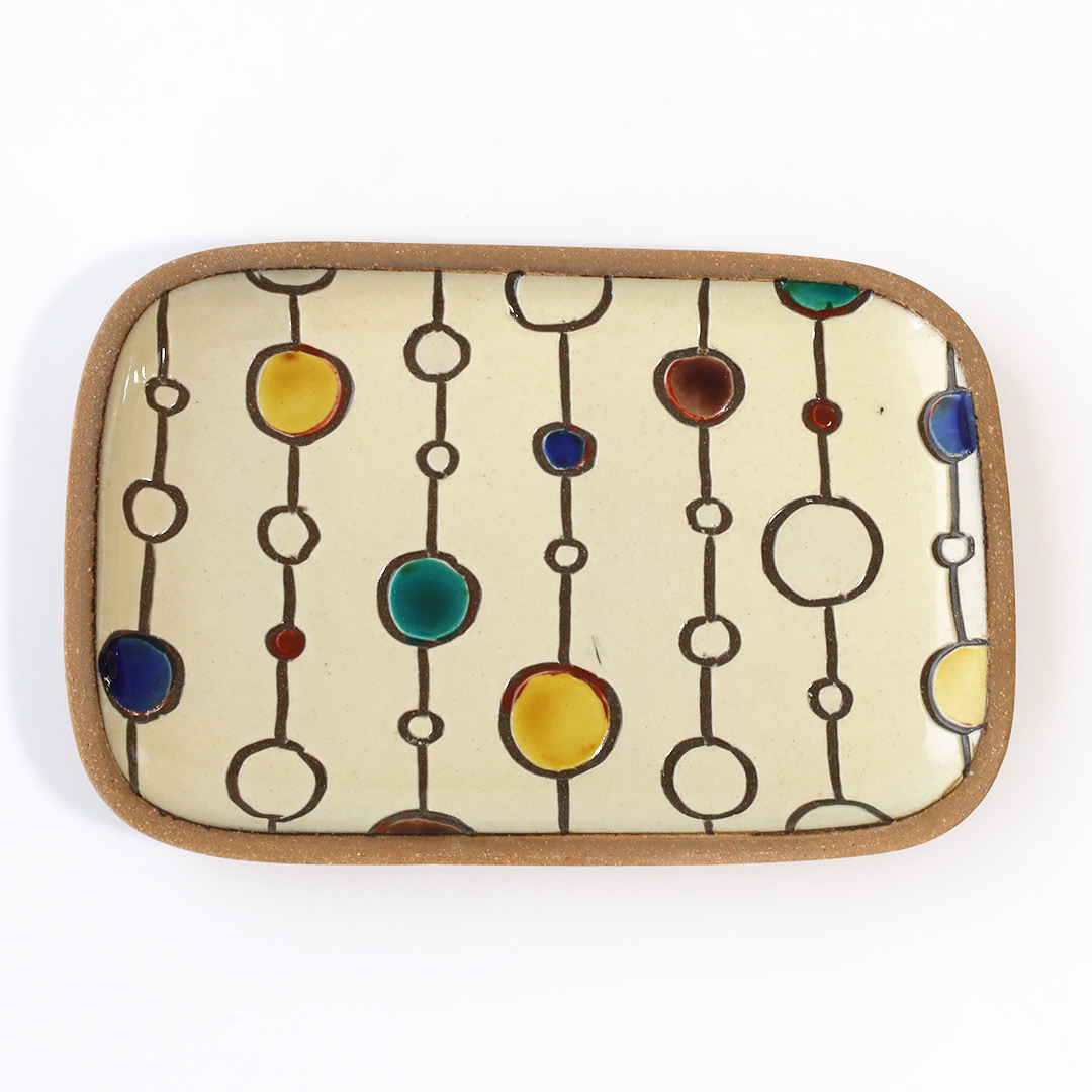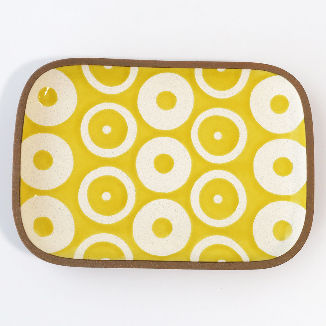 カラフルで可愛い模様の角皿が代表作の工房です。