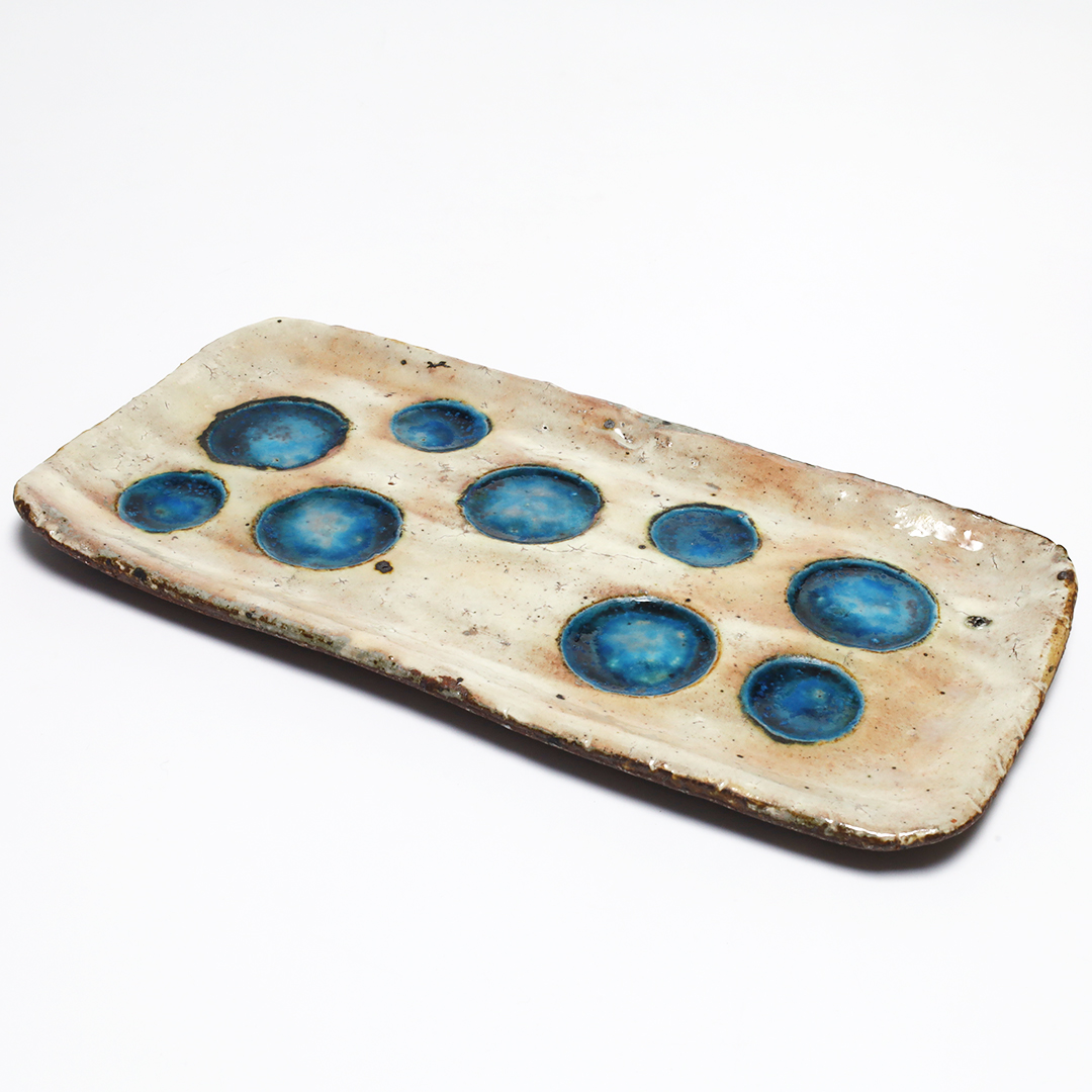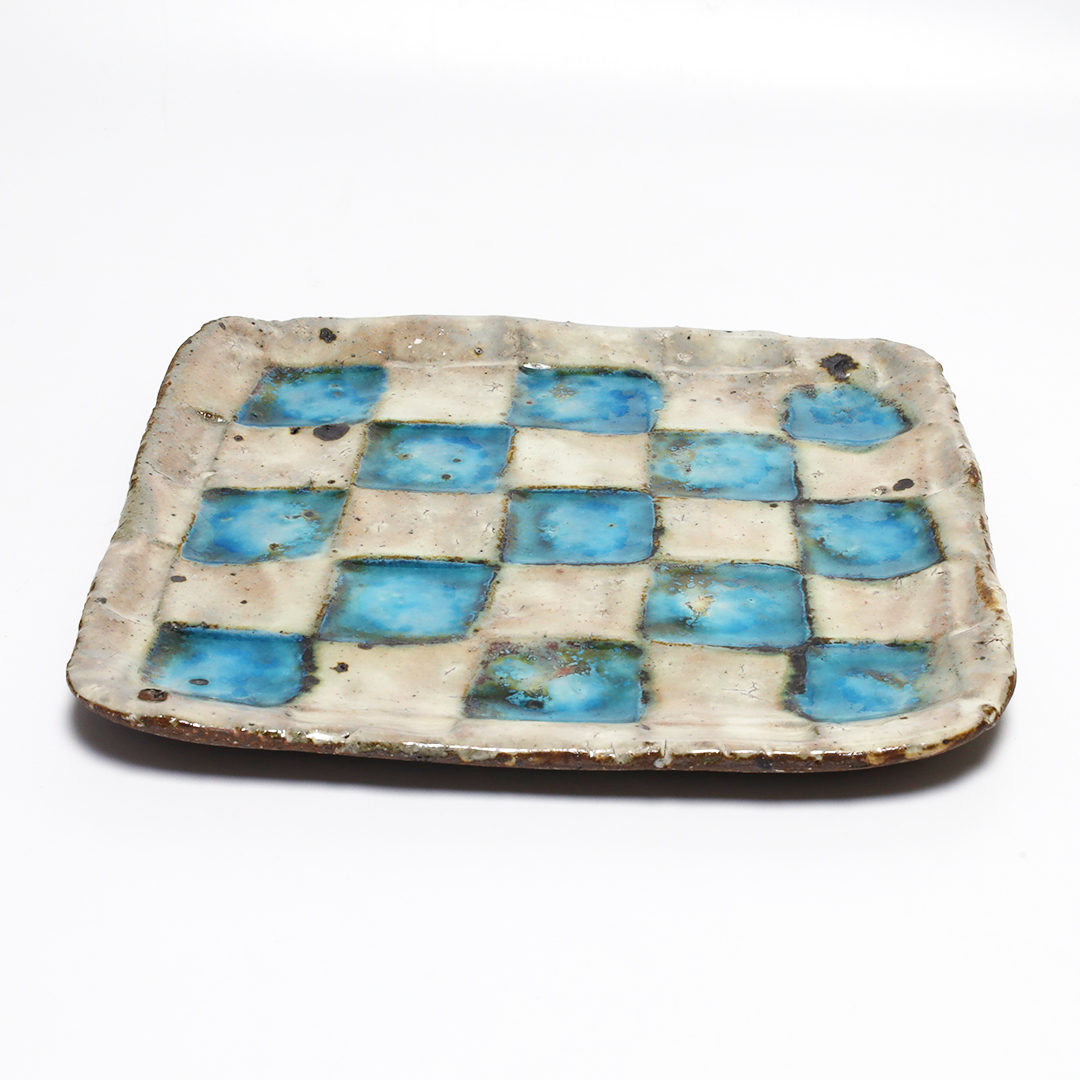 小辻真一 春萌窯 青市松皿ドット・長方形