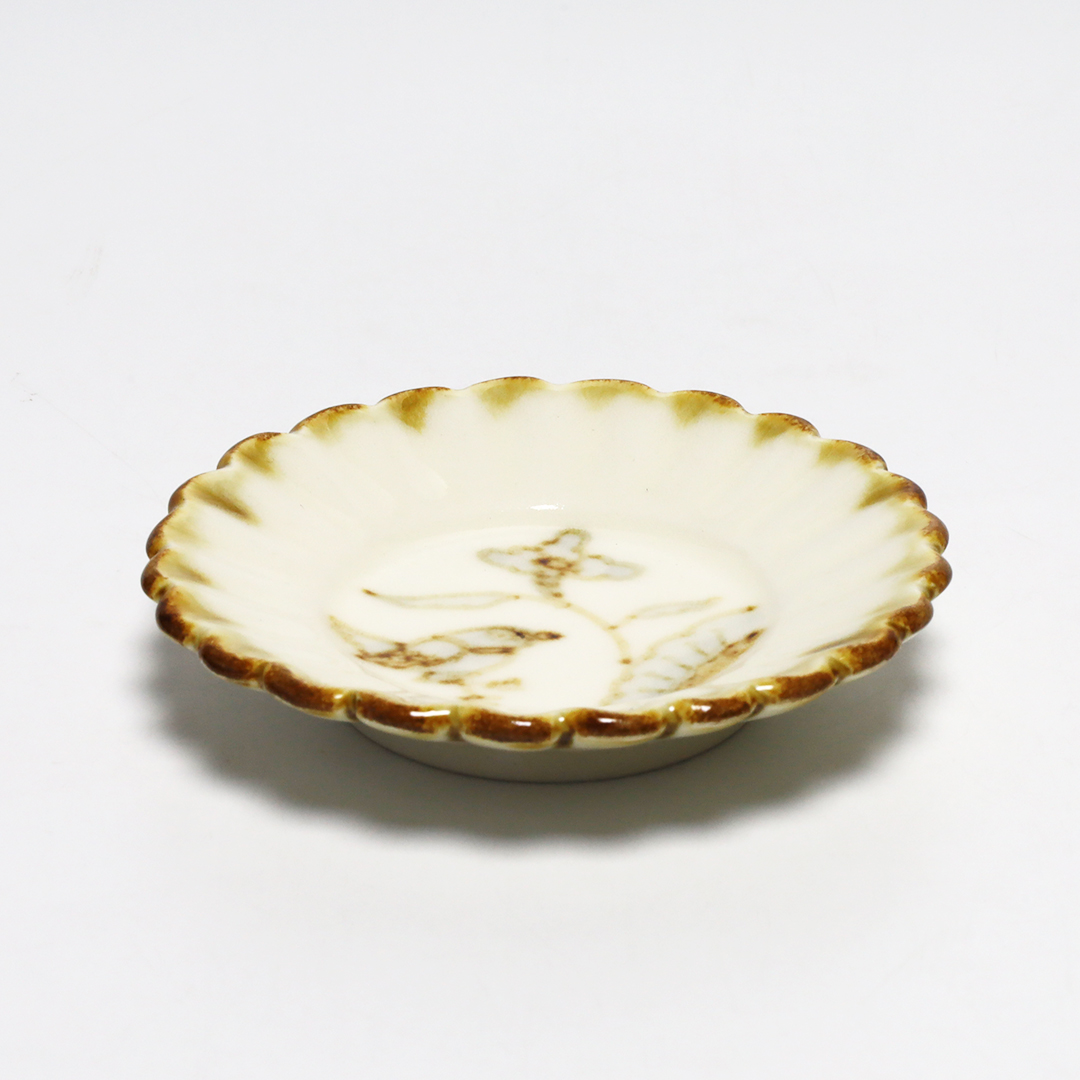 竹下聖 花鳥図の輪花豆皿